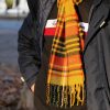 Bufanda de fibra acrílica de tacto suave. Patrón de cuadros tejidos. Borde de borlas. Dimensiones: 181 x 31 cm